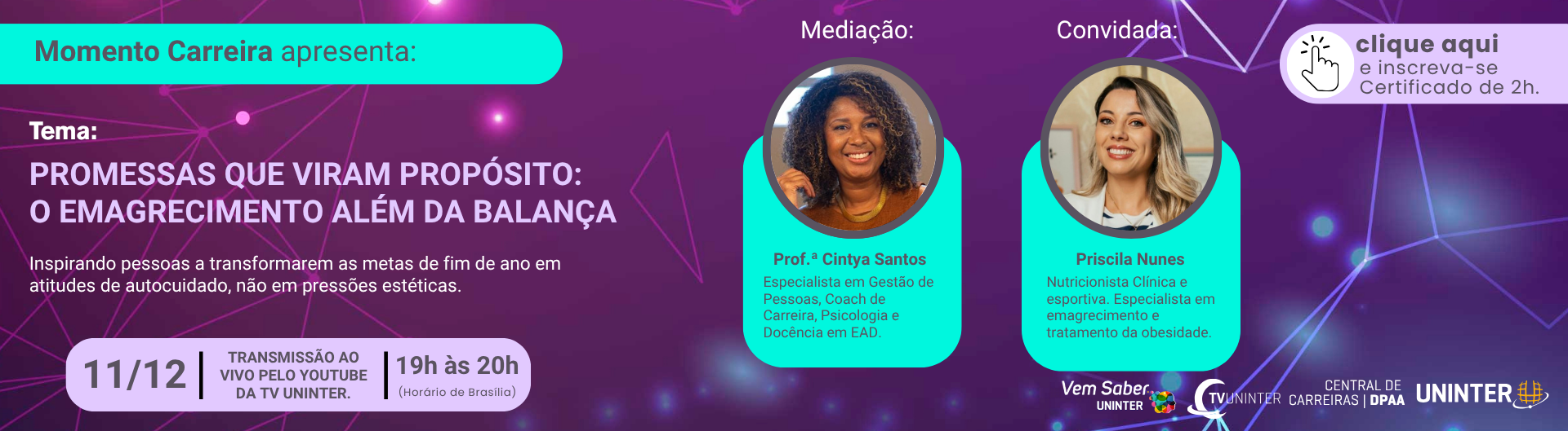 O objetivo da Central de Carreiras é atuar de forma estratégica no desenvolvimento econômico e social dos estudantes e egressos da UNINTER, promovendo não apenas sua inserção e recolocação profissional, mas também o fortalecimento de competências e habilidades que ampliem suas perspectivas de carreira e empregabilidade ao longo da vida.