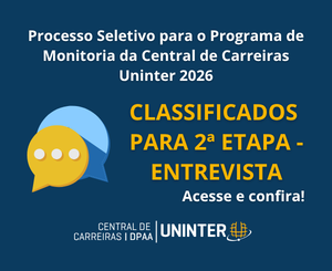 Processo Seletivo para o Programa de Monitoria da Central de Carreiras Uninter – 2026 – Classificados para a 2ºEtapa – Entrevista