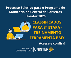 Processo Seletivo para o Programa de Monitoria da Central de Carreiras Uninter – 2026 – Classificados para a 3ºEtapa – Treinamento Ferramenta BMY